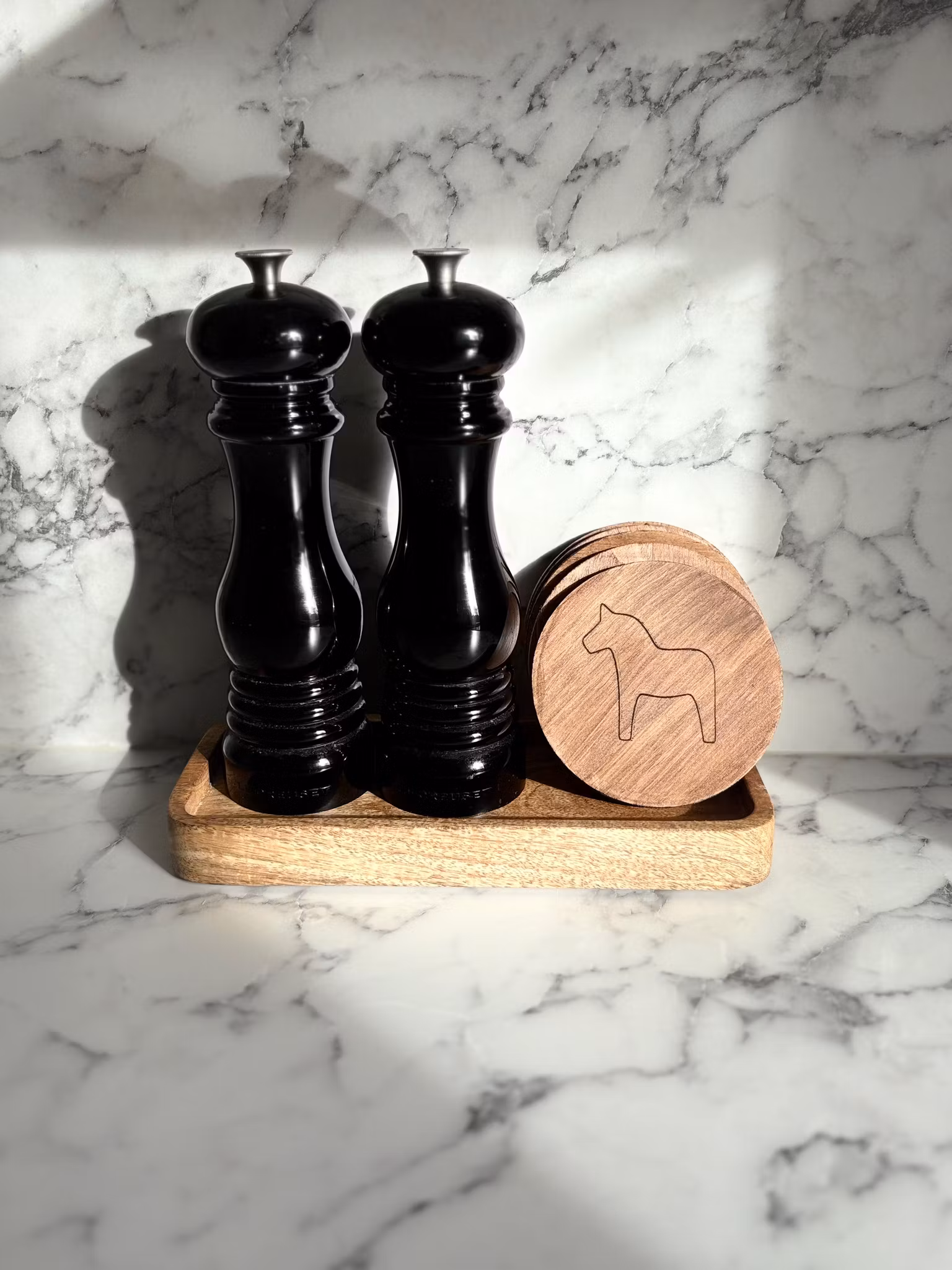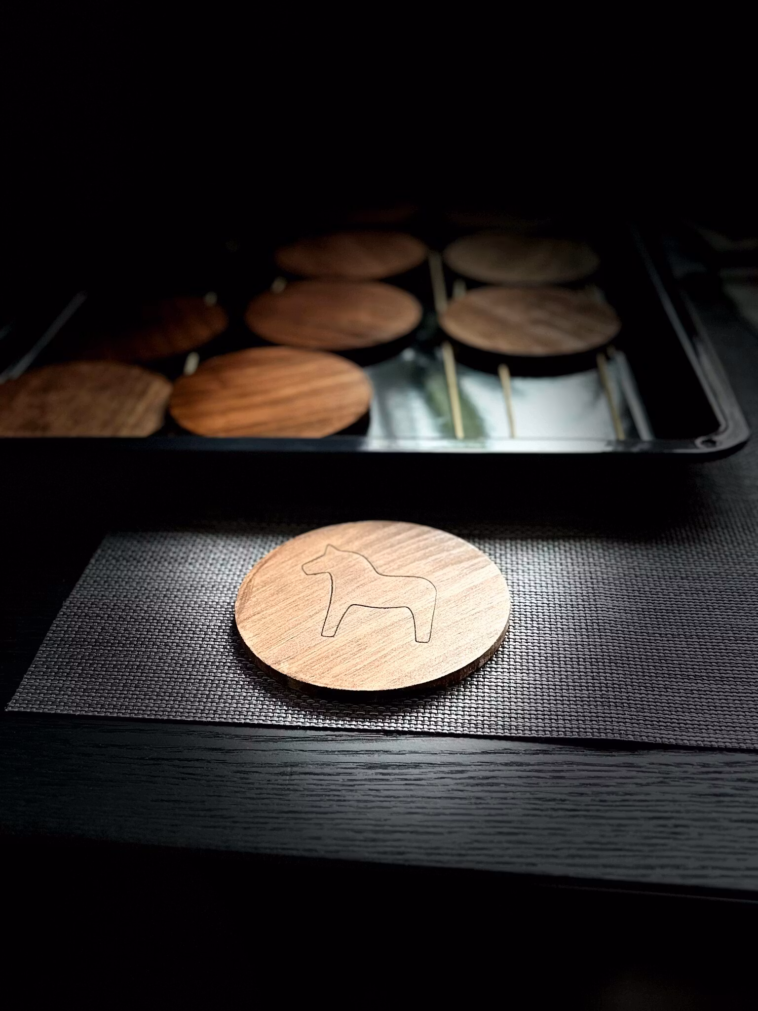 Glasunderlägg i trä Förvandla varje måltid till en traditionell fest med våra unika glasunderlägg, prydda med det ikoniska dalahästmotivet!Hos Dalaträ UF e