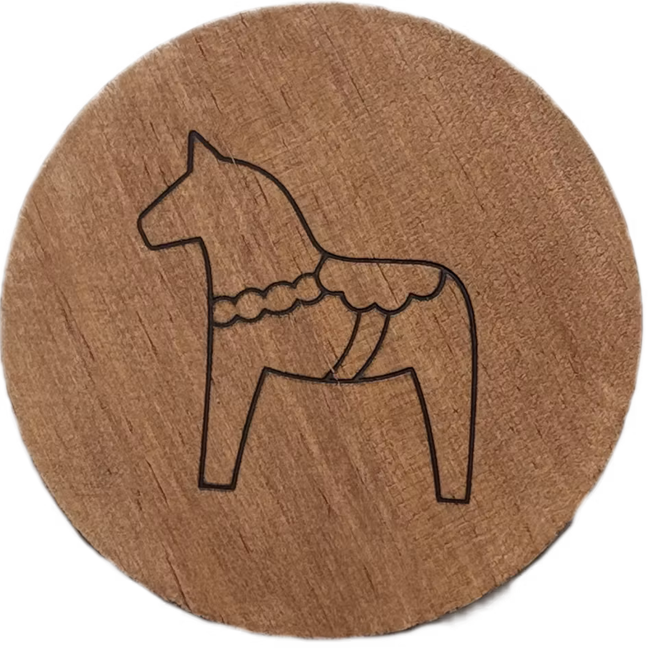 Glasunderlägg i trä Förvandla varje måltid till en traditionell fest med våra unika glasunderlägg, prydda med det ikoniska dalahästmotivet!Hos Dalaträ UF&n